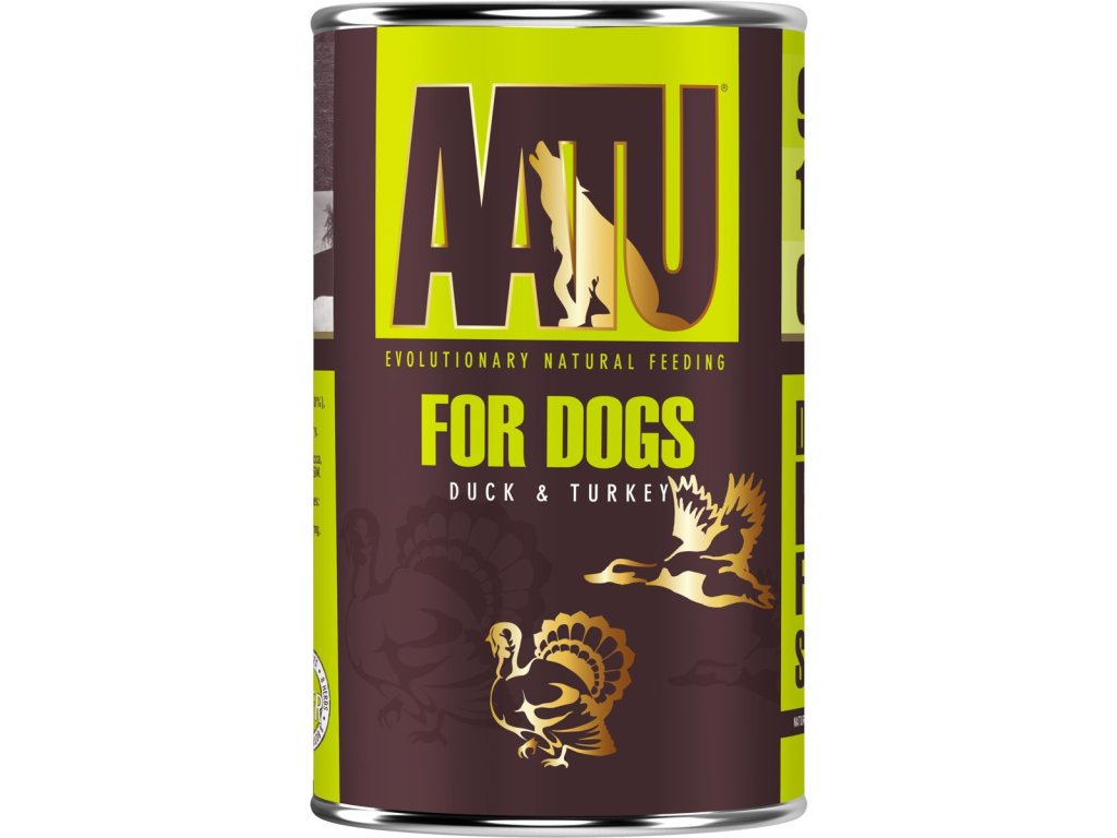 Kvalitní konzerva AATU z čerstvého kachního a krůtího masa bez konzervačních látek. Bez obilovin, brambor a lepku.