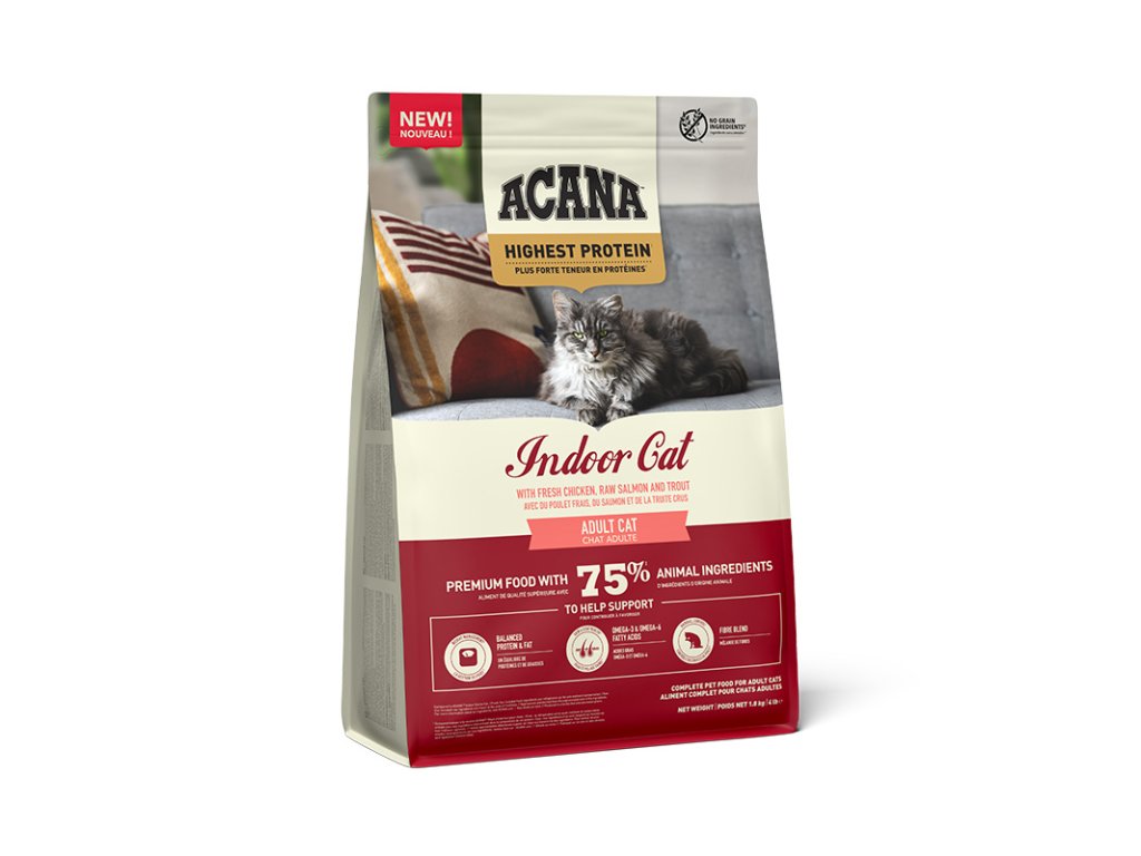 Hrdě vyrobeno v Kanadě za použití těch nejlepších ingrediencí. Složení: Čerstvé kuřecí maso (11 %), syrový losos (9 %), syrový pstruh (9 %), dehydrované kuřecí maso (9 %), dehydrovaná treska (9 %), dehydrovaný sleď (9 %), celé fazole pinto, celý hrách, čerstvé kuřecí droby (játra, srdce, žaludek) (6 %), celá červená čočka, celá cizrna, celá zelená čočka, kuřecí tuk (4 %), syrové krůtí maso (4 %), čerstvá vejce (4 %), mletá ozdobnice, hrachová vláknina, rybí olej (0,5 %), syrová krůtí játra (0,5 %), sušená mořská řasa, celá čerstvá dýně, celá čerstvá máslová dýně, celá čerstvá mrkev, celá čerstvá jablka, celé čerstvé hrušky, celá čerstvá cuketa, sušený kořen čekanky, čerstvá kapusta, čerstvý špenát, čerstvé listy tuřínu, čerstvé listy řepy, celé brusinky, celé borůvky, celé plody muchovníku, kořen kurkumy, ostropestřec mariánský, kořen lopuchu, levandule, kořen proskurníku, šípky.Doplňky (na kg): Technologické doplňky: 1b306(i) extrakt tokoferolu z rostlinných olejů: 121 mg, 1a330 kyselina citrónová: 40 mg. Smyslové doplňky: extrakt z rozmarýnu: 80 mg. Výživové doplňky: 3a890 cholin chlorid (cholin): 2 100 mg, 3a370 taurin: 400 mg, 3b612 (zinek: 150 mg), 3b407 (měď: 10 mg), 3a821 vitamin B1: 12,5 mg, 3a825i vitamin B2: 10 mg, 3a314 niacin: 50 mg, 3a841 D pantothenát vápenatý: 8 mg, 3a831 vitamin B6: 6,5 mg, 3a316 kyselina listová: 0,75 mg, 3a880 biotin: 0,13 mg, 3a835 vitamin B12: 0,1 mg, 3a710 vitamin K3: 0,5 mg, 3a672a vitamin A: 3 750 IU, 3a671 vitamin D3: 500 IU, 3a700 vitamin E: 170 IU, 3a300 kyselina askorbová: 12,5 mg, 3c301 DL methionin: 99 mg.Analytické složky: hrubý protein 38 %, obsah tuku 14 %, hrubý popel 9 %, hrubá vláknina 6 %, vlhkost 10 %, vápník 1,3 %, fosfor 1,1 %, hořčík 0,1 %, taurin 0,2 %, omega 6 mastné kyseliny 3 %, omega 3 mastné kyseliny 1 %, DHA 0,3 %, EPA 0,2 %. OBSAH KALORIÍ (vypočítaný): Metabolizovatelná energie je 3 630 kcal/kg (436 kcal na odměrku 250 ml/120 g).