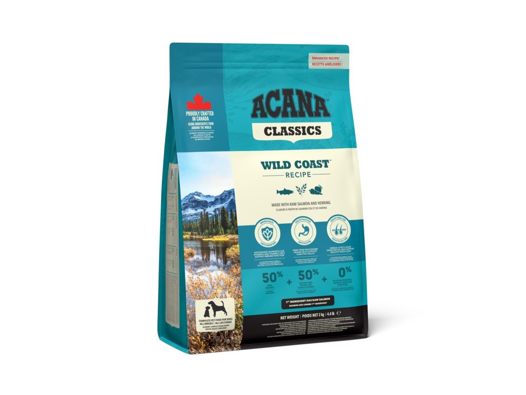 Receptury ACANA® jsou vytvořeny od začátku až do konce s použitím lahodných a kvalitních surovin. Rybí ingredience, výživné ovoce, obiloviny a zelenina v krmivu ACANA Classics Wild Coast poskytují vašemu psovi syté a výživné jídlo vyrobené z jednoduchých a zdravých surovin. Obsahuje také ingredience bohaté na živiny, které podporují tři klíčové zdravotní benefity, včetně imunitní funkce, zdravého trávení a zdravé kůže a srsti.