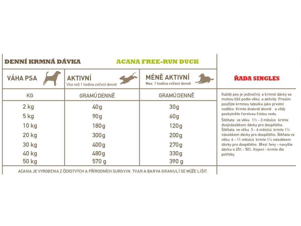 Kompletní kanadské krmivo s jediným zdrojem živočišného proteinu Acana Dog Free-run Duck Singles.