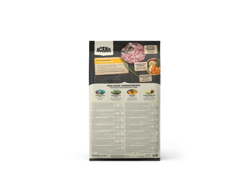 SLOŽENÍ: Čerstvé kuřecí maso (18 %), dehydrované kuře (18 %), celá červená čočka, celý zelený hrách, čerstvé kuřecí droby (játra, srdce) (7 %), kuřecí tuk (7 %), dehydrovaná krůta (4 %), vejce (4 %), syrový platýs (4 %), dehydrovaný sleď (4 %), rybí olej (3 %), celá zelená čočka, celá cizrna, celý žlutý hrách, vláknina z hrášku, hráškový škrob, syrová krůtí játra (1 %), sůl, sušená řasa, celá čerstvá dýně, čerstvá celá máslová dýně, čerstvá celá mrkev, celá čerstvá jablka , čerstvé celé hrušky, čerstvá celá cuketa, sušený kořen čekanky, čerstvá kapusta, čerstvý špenát, čerstvé listy tuřínu, čerstvé listy červené řepy, čerstvé brusinky, čerstvé celé borůvky, čerstvý celý muchovník olšolistý, kurkuma, ostropestřec, kořen lopuchu, levandule, kořen ibišku, šípky.