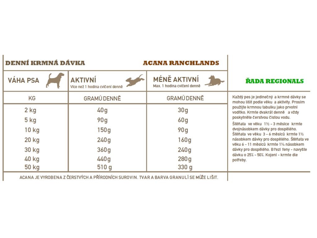 Hlavní přednosti krmiva Acana Dog Regionals Ranchlands: