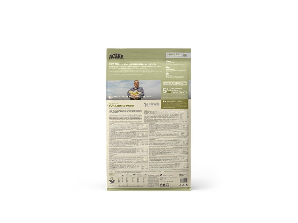 Vydatné a velmi netradiční složení krmiva Acana Dog Singles Yorkshire Pork nabízí chutnou stravu i citlivým a alergickým psům. Neobsahuje žádné obiloviny, pouze maso, zeleninu, ovoce a bylinky. Který pejsek by odolal?