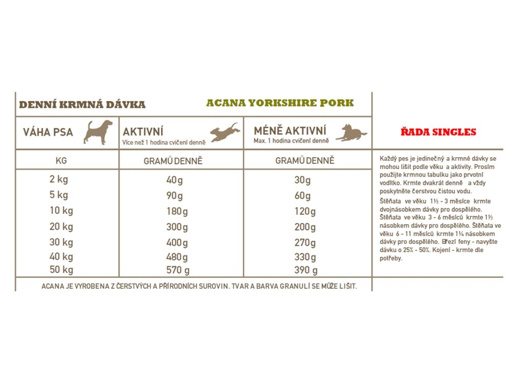 Přednosti krmiva Acana Dog Singles Yorkshire: