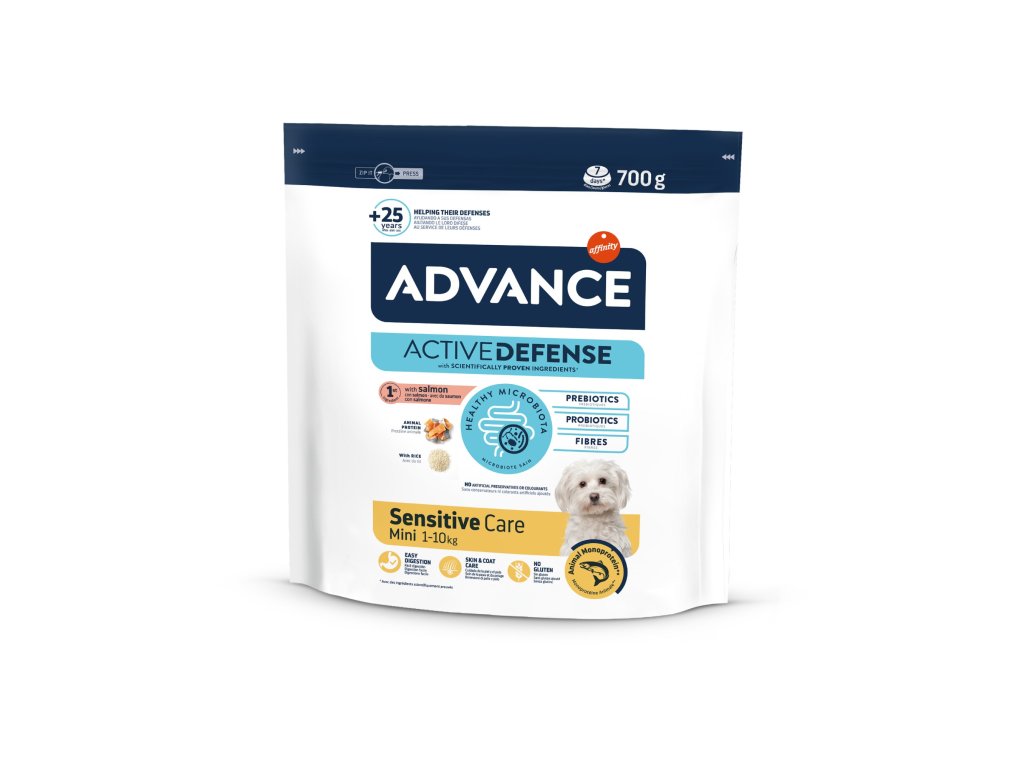 Advance Dog Mini Sensitive je superprémiové krmivo navržené speciálně pro dospělé psy malých plemen s citlivým zažíváním. Toto monoproteinové krmivo využívá lososa jako jediný zdroj živočišných bílkovin, doplněný o rýži a inulin pro podporu zdravého trávení a snadnou stravitelnost. Obsahuje omega mastné kyseliny, biotin a zinek k podpoře zdraví kůže a srsti. Advance Dog Mini Sensitive je ideální volbou pro psy trpícími citlivým trávením, nabízející protialergenní a vyváženou stravu.