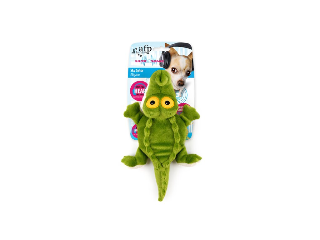 Zábavný plyšový aligátor s ultrazvukovým pískátkem, které slyší pouze váš pes.