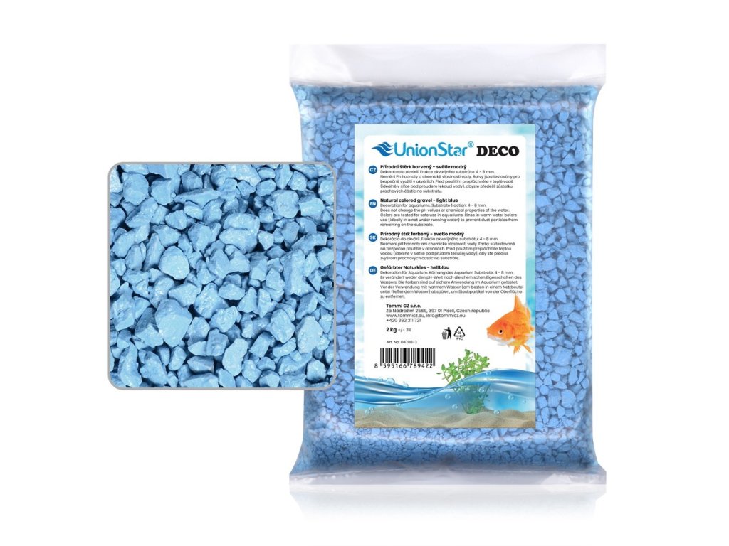 Akvarijní štěrk DECO je vysoce kvalitní přírodní substrát s velikostí zrn 4–8 mm, speciálně upravený pro použití v sladkovodních i mořských akváriích. Jeho barvy jsou bezpečné a testované, aby nenarušovaly pH hodnoty ani chemické vlastnosti vody, čímž zajišťují bezpečné a stabilní prostředí pro ryby a rostliny.