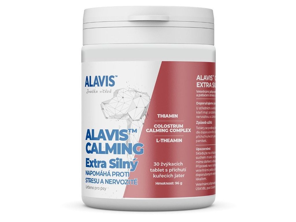 Alavis Calming Extra silný je určen pro psy, kteří vykazují nervozitu, hyperaktivitu, úzkost či reagují na stres z prostředí. Přípravek obsahuje ojedinělé složení látek podporující vyrovnané chování psů.