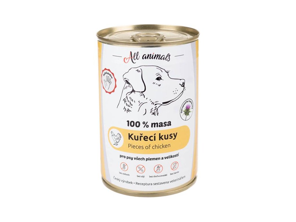 Luxusní masová konzerva s obsahem nasekaných kousků kuřete. Plnohodnotné vlhké krmivo bez se 100 % deklarovaným zdrojem živočišného proteinu. S přídavkem oleje z ostropestřce mariánského.