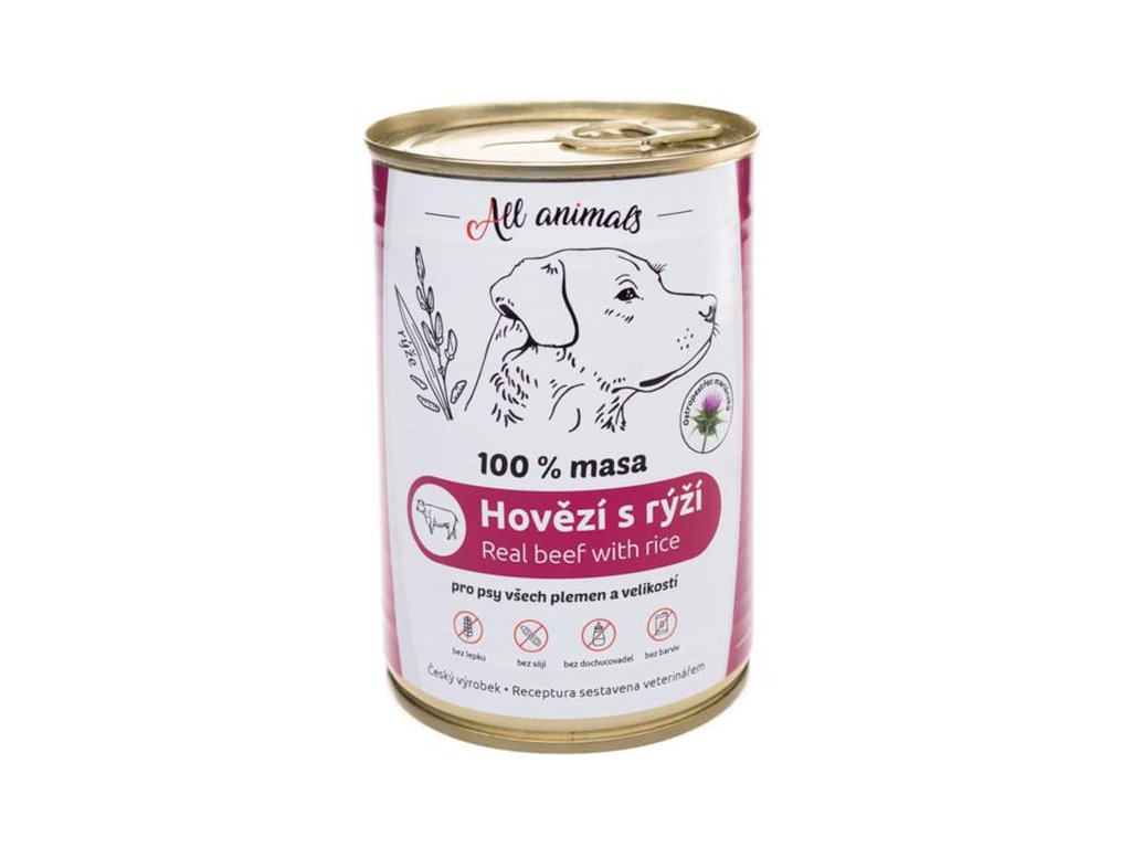 ALL ANIMALS konzerva Hovězí maso mleté s rýží 400g