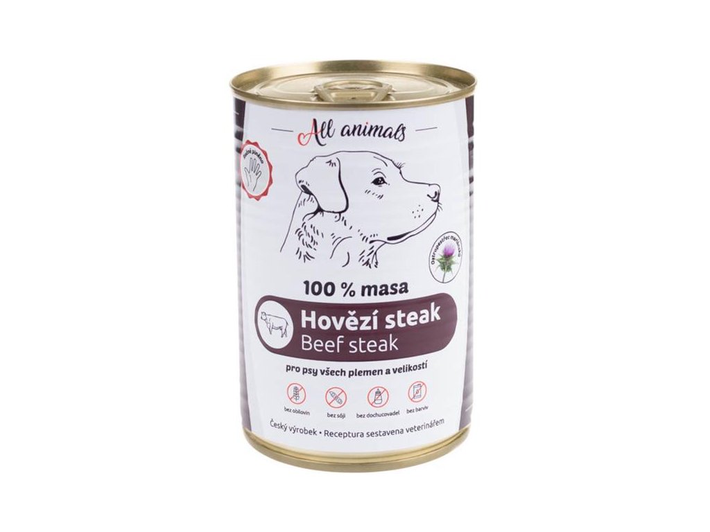ALL ANIMALS konzerva pro psy hovězí steak 400g