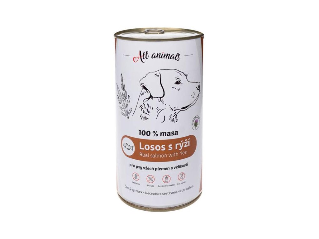 ALL ANIMALS konzerva pro psy losos mletý s rýží 1200g