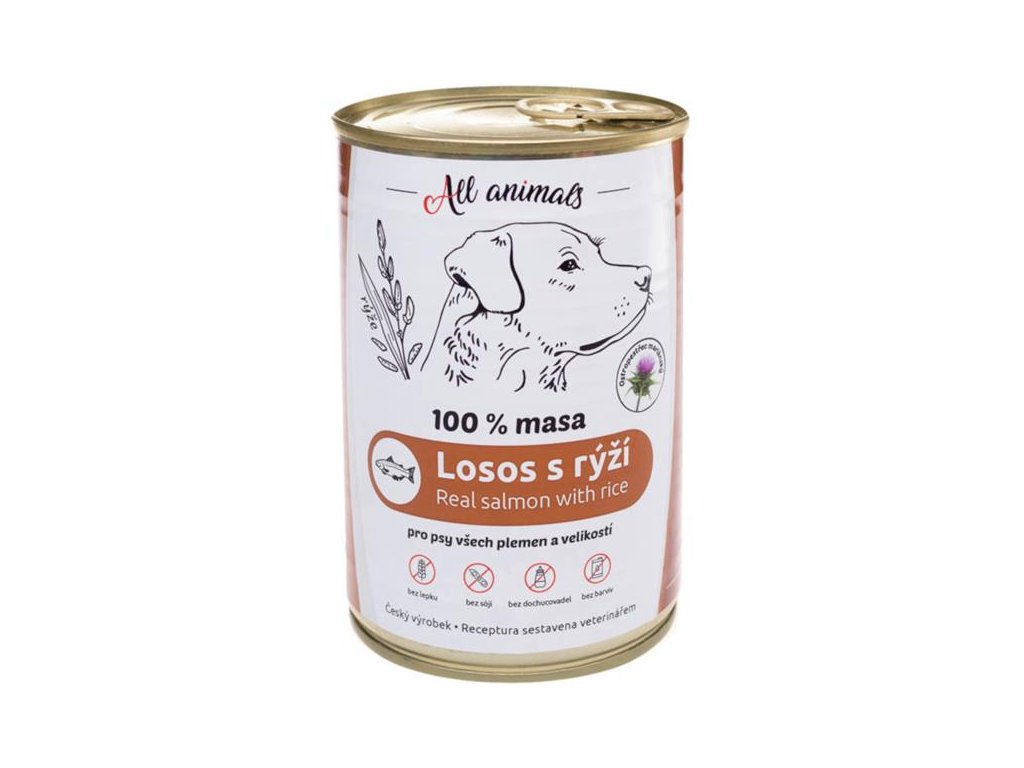 ALL ANIMALS konzerva pro psy losos mletý s rýží 400g
