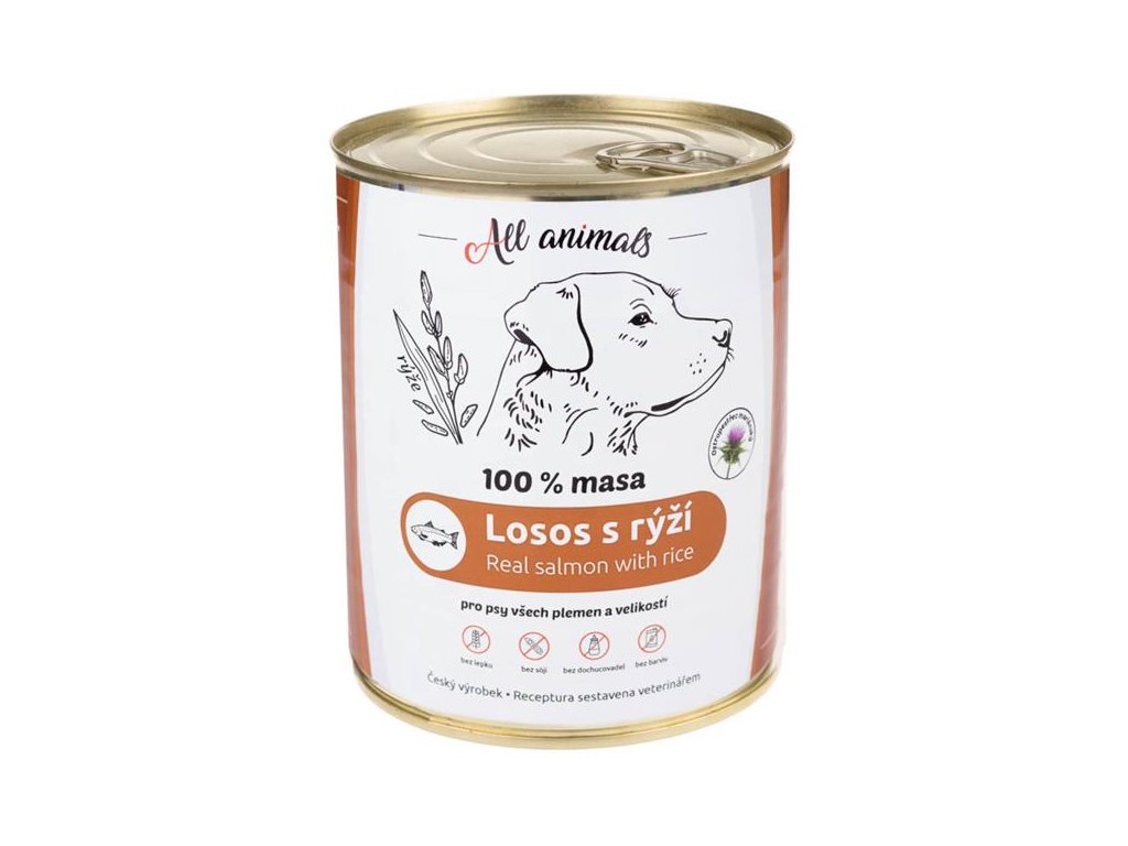 ALL ANIMALS konzerva pro psy losos mletý s rýží 800g