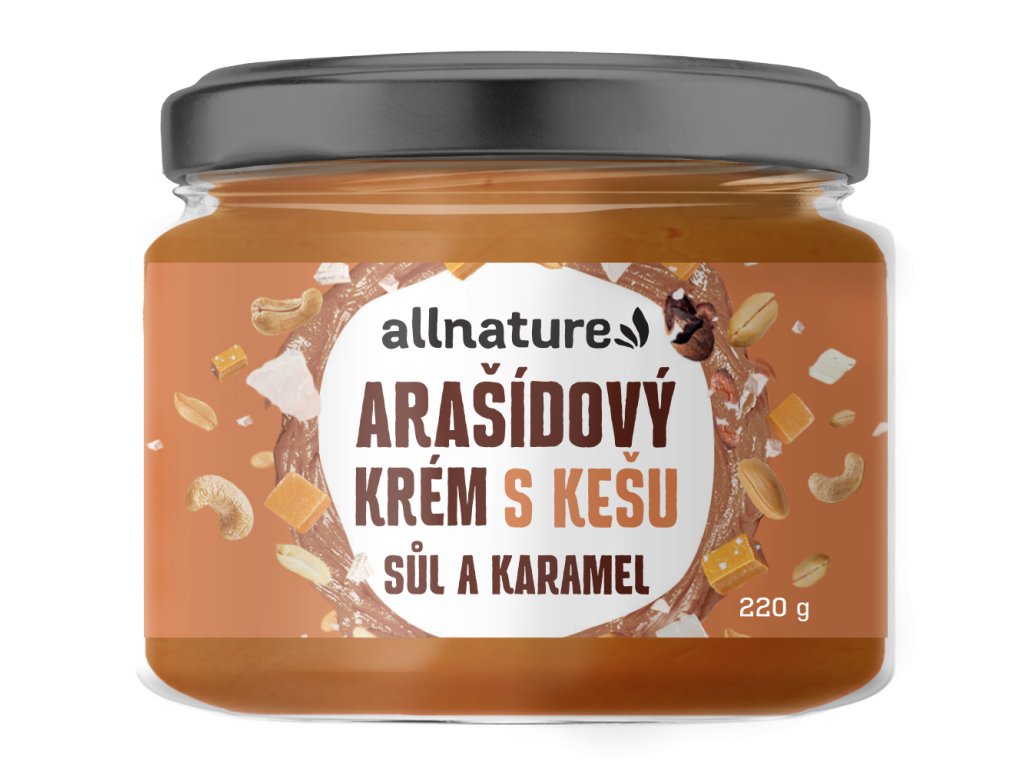 Allnature Arašídový krém s kešu, solí a karamelem 220 g