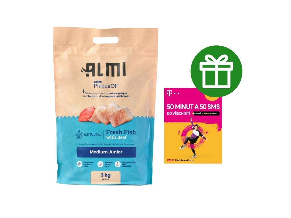 Granule ALMI jsou plné kvalitních surovin, které štěně potřebuje pro zdravý růst a vývoj. Obsahují čerstvou rybu, konkrétně sledě a hovězí maso, které jsou zdrojem bílkovin potřebných pro pevné a silné svaly. Dále je v krmivu hrách, jablka, řepná vláknina a rýže pro lepší stravitelnost. V našem krmivu nenajdete umělá barviva a pro zachování čerstvosti a kvality je přirozeně konzervováno rozmarýnovým extraktem. Granule ALMI jsou obohacené o PlaqueOff™, u kterého je klinicky prokázáno, že snižuje zubní plak, zubní kámen a zlepšuje špatný dech.