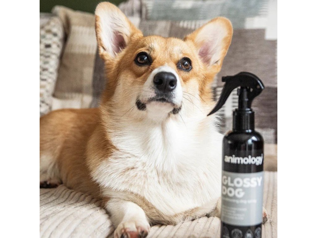 Animology Glossy Dog je pečující sprej obohacený o směs vitamínů B, C a E. Obsahuje také extrakt z aloe vera a pečující složky, které napomáhají udržovat srst psa čistou a zdravou.