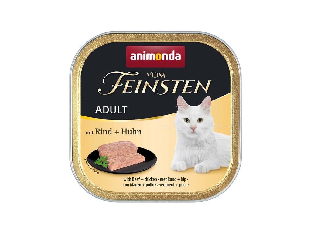Animonda paštika Adult s hovězím a kuřecím masem je jemná masitá specialita, se zvláště velkým podílem vysoce kvalitních živočišných živin pro každodenní stravu dospělé kočky