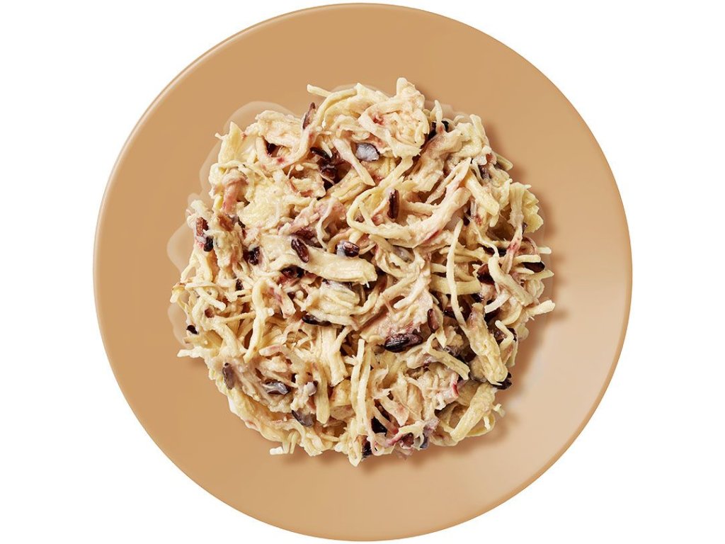 Složeni: maso a živočišné produkty (23% kuřecí prsa), 230 kuřecí vývar, 2% divoká rýže.