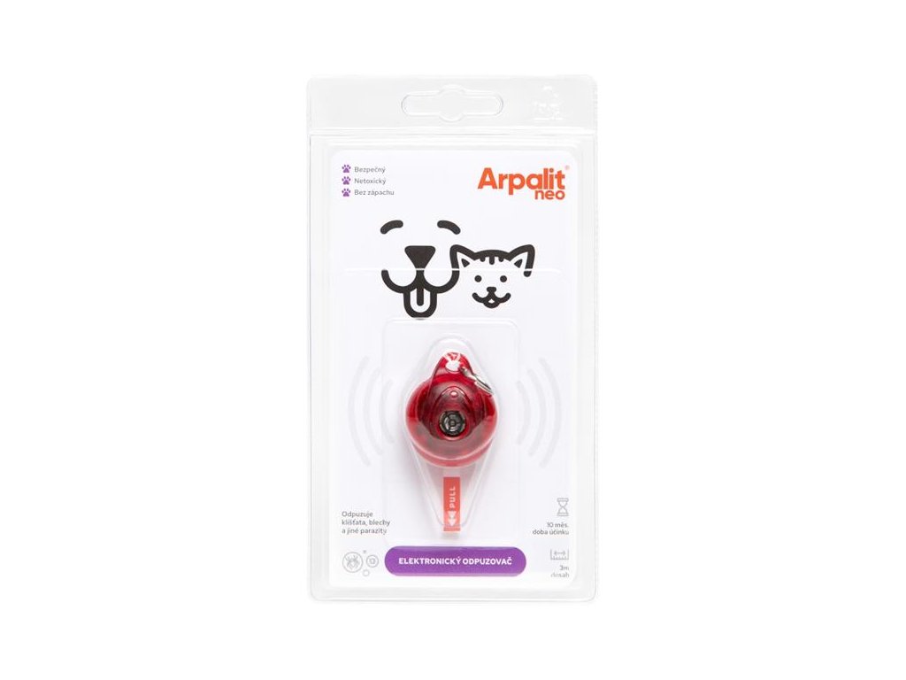 Veterinární technický prostředek elektronický repelent Arpalit® Dog se připne na obojek otvorem směrem k tělu zvířete. Elektronický repelent obsahuje mikročip, který vydává ultrazvukové impulzy o frekvenci 40 kHz neslyšitelné pro člověka a zvíře. Krátké ultrazvukové impulzy ruší a odpuzují parazity v okruhu 3 metrů od zvířete a tím brání napadení.