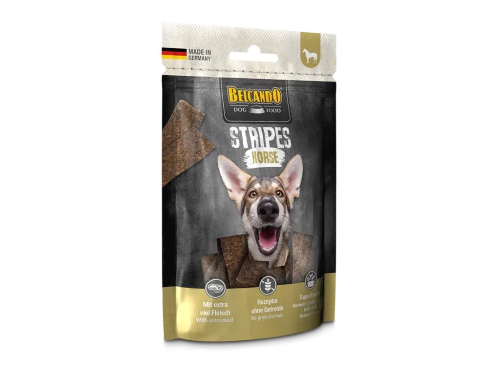 Čtyřnozí milovníci koňského masa si přijdou na své. Stripes Koňské jsou plné chuti a snadno stravitelné. Zážitek ze snacku je doplněn superpotravinami bohatými na živiny jako jsou pivovarské kvasnice, krill a aromatickými bylinkami pro ještě lepší chuť.