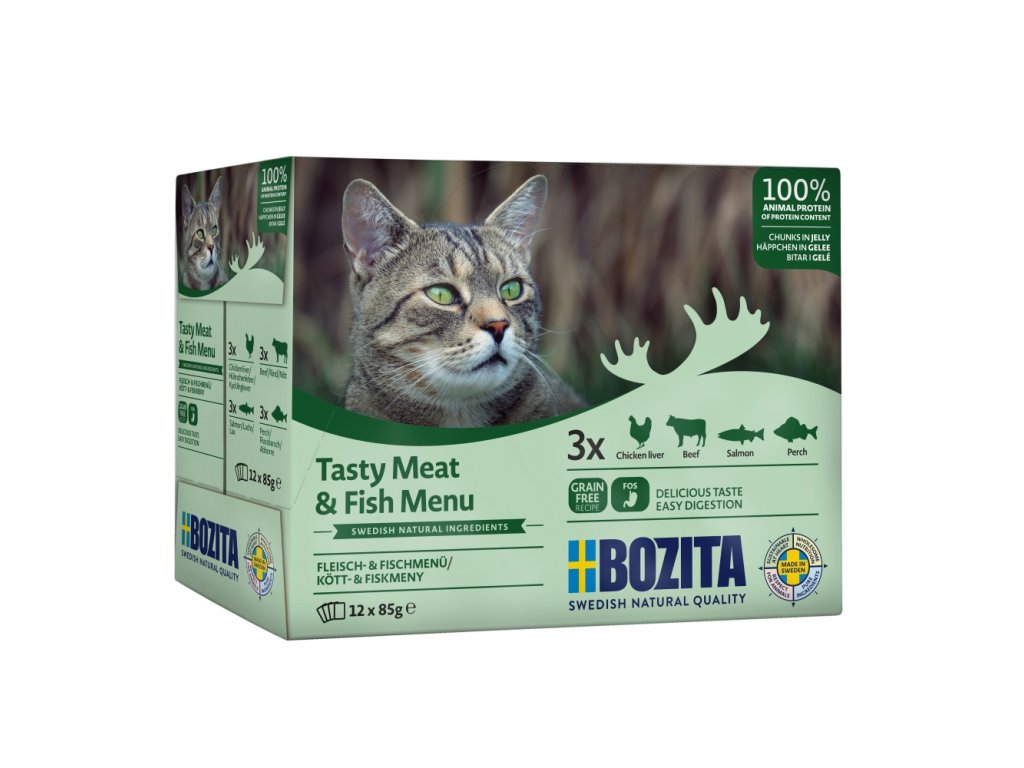 Bozita Cat kousky masa a ryb v želé 12 x 85 g