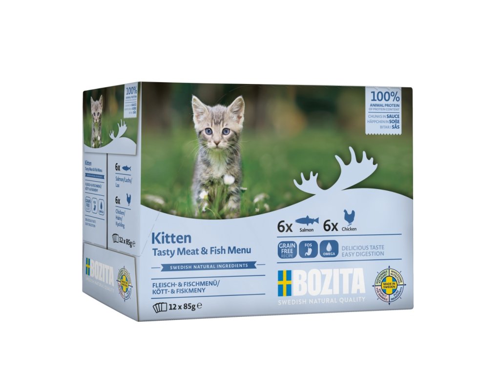 Speciálně vyvinuté pro rostoucí koťátka a březí nebo kojící kočky. Losos obsahuje plnohodnotné mastné kyseliny, které jsou důležité pro vývoj např. funkce mozku koťat a zraku. Kompletní krmivo bez obilovin obsahující základní vitamíny a minerály, které vaše kočka potřebuje.