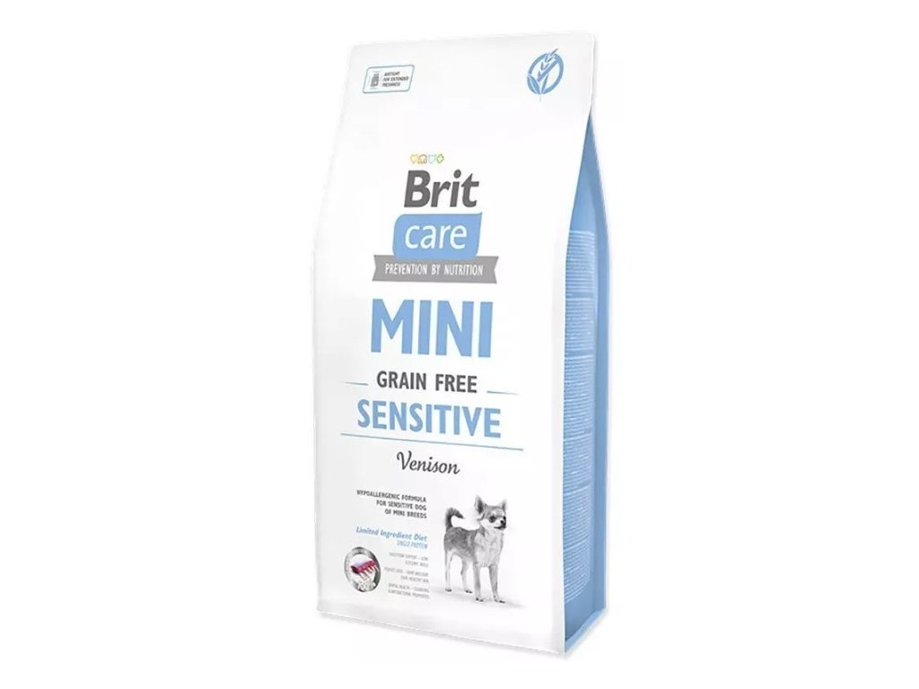 Superprémiové krmivo pro dospělé psy Brit Care Mini Grain-Free je vyrobeno zcela bez obilovin. Granule SENSITIVE MINI jsou určeny pro dospělé citlivé psy. Složení krmiva obsahuje maso ze zvěřiny (jelen), které je hypoalergenní a šetrné ke psímu zažívání. Ve složení je zahrnut soubor přírodních aditiv, které podporují obranyschopnost. Díky nízkému glykemického indexu je krmivo ideální jako prevence před obezitou.