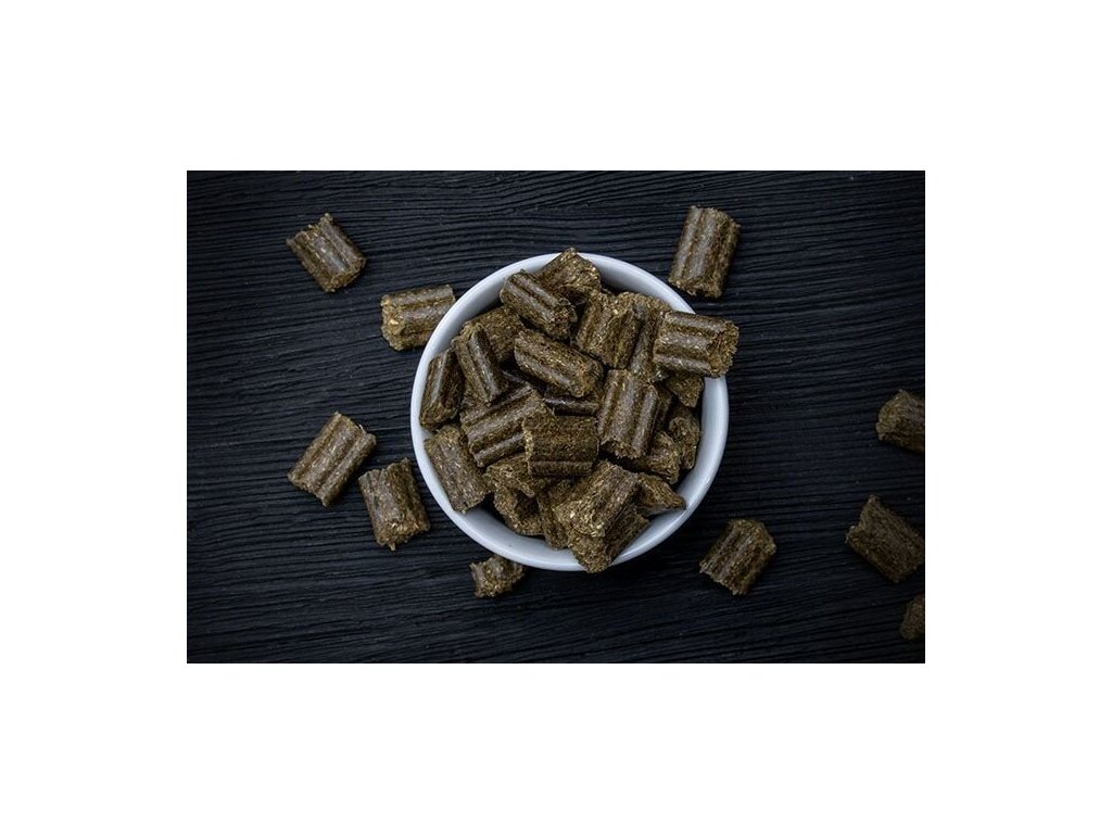 Díky speciálnímu způsobu výroby jsou obsažené byliny zpracovány v různé délce a tloušťce vláken. Proč? Zatímco neustále dorůstající řezáky a stoličky potřebují drsnou vláknitou strukturu pro řádné obrušování, jemné částice jsou zase dobré pro slepé střevo, které slouží jako fermentační komora. Specifická délka vláken je potřeba i pro zdravé zažívání.