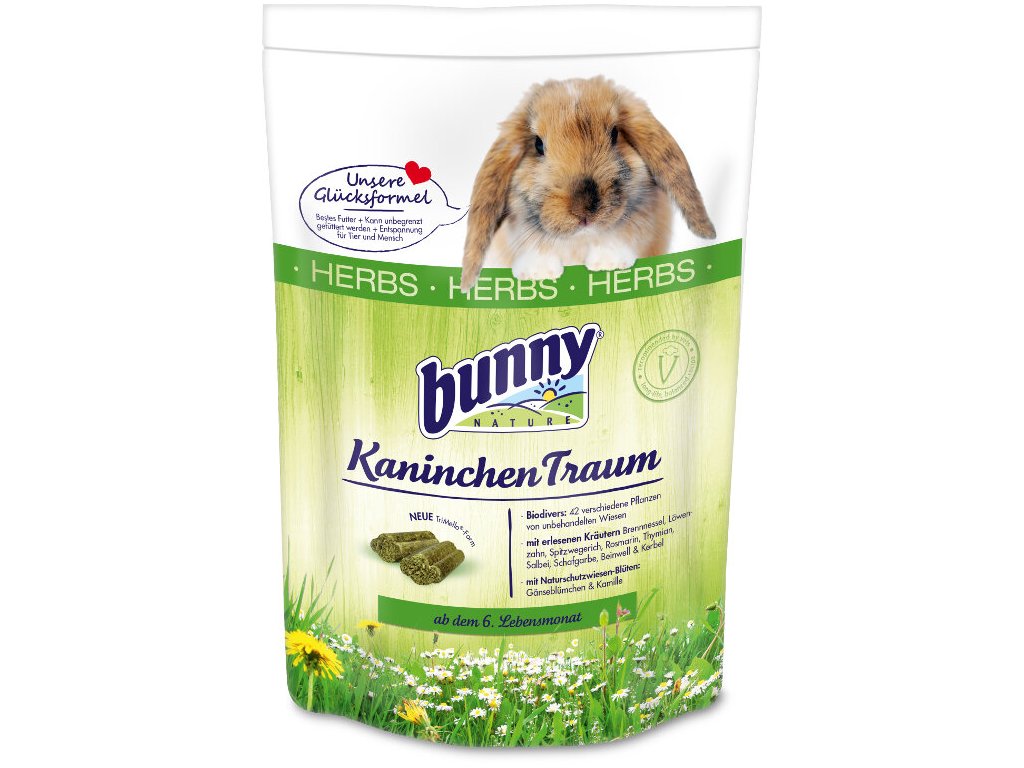 Jejich strava se skládá z rozmanitých zelených rostlin doplněných o kořínky, zeleninu a ovoce. Takové je i krmivo Bunny Nature. – obsahuje 42 různých travin z přirozených luk – doplněno o vybrané byliny (kopřiva, pampeliška, jitrocel, rozmarýn, tymián, šalvěj, řebříček, kostival a kerblík) a luční květy (sedmikrásky a heřmánek) – vyvážený obsah vápníku pro zdravé zuby a kosti – tři různé délky vláken pro správné obrušování zubů a zdravou střevní mikroflóru – optimální poměr vlákniny a škrobu pomáhá předcházet tloustnutí = ideální složení pro dlouhý a spokojený život vašeho králíčka
