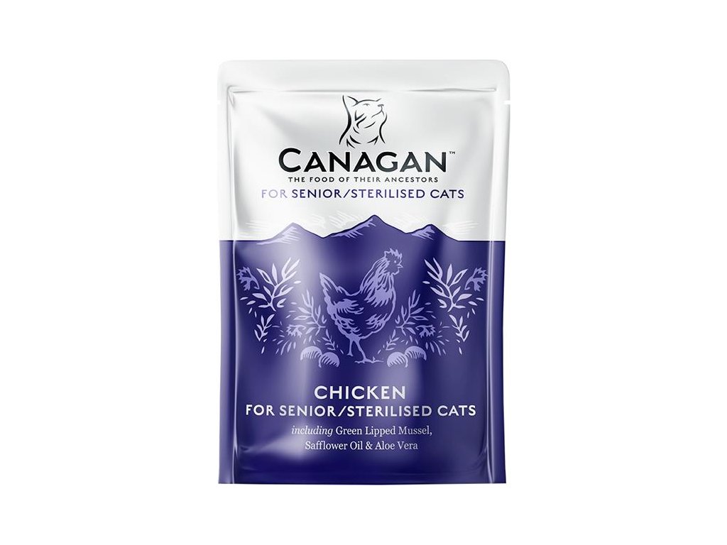 Canagan Chicken for Senior / Sterilised – je kompletní krmivo pro kočky starší 7 let nebo pro kastrované a sterilizované kočky z kuřecího masa v receptuře bez obilovin. Nejlepší kousky masa (v každé kapsičce je až 80 % živočišných surovin) pro zdraví a skvělou chuť krmiva. Zelená škeble navíc představuje přirozený zdroj glukosaminu a společně s dalšími doplňky pomáhá pečovat o zdravé klouby vaší kočky.