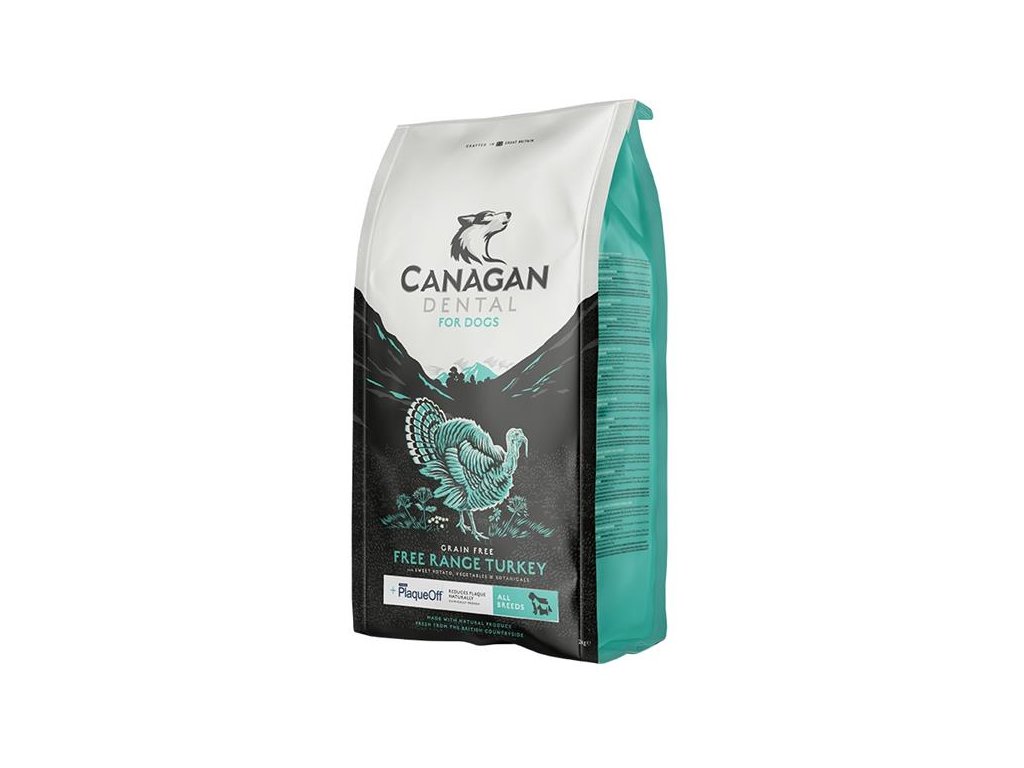 Kompletní krmivo pro psy Canagan Dental je pečlivě připravená bezobilná receptura, jejíž hlavní složku tvoří krůtí maso. Speciální složka ProDen PlaqueOff® pomáhá přirozeně snižovat tvorbu zubního plaku (do slin uvolňuje přírodní složky, které rozkládají bakteriální povlak na zubech, na němž se usazuje zubní plak). Je vyroben z mořských řas získávaných podél severoatlantického pobřeží.