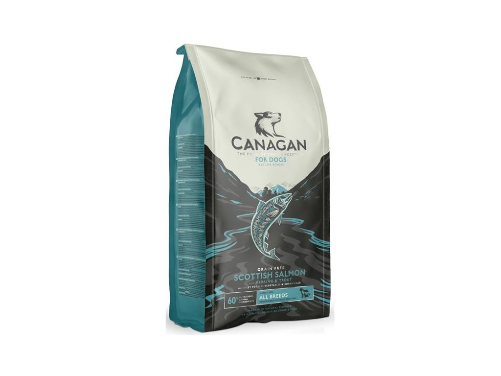 Kompletní krmivo pro psy Canagan Scottish Salmon je pečlivě připravená bezobilná receptura, která kombinuje maso několika druhů ryb. Čerstvě připravený vykostěný losos je doplněn o sledě, pstruhy a bělomasé mořské ryby a všechny jsou zpracovávány podle standardů platných pro lidské potraviny. Canagan Scottish Salmon se sníženým obsahem sacharidů představuje jedinečnou recepturu s biologicky snadno dostupnými bílkovinami.
