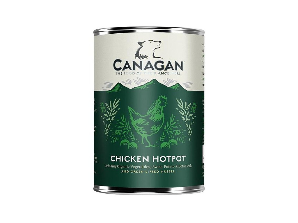 Šťavnatá masová konzerva Canagan Chicken Hotpot For Dogs. Kuřecí ragú v receptuře bez obilovin - kompletní krmivo pro dospělé psy.