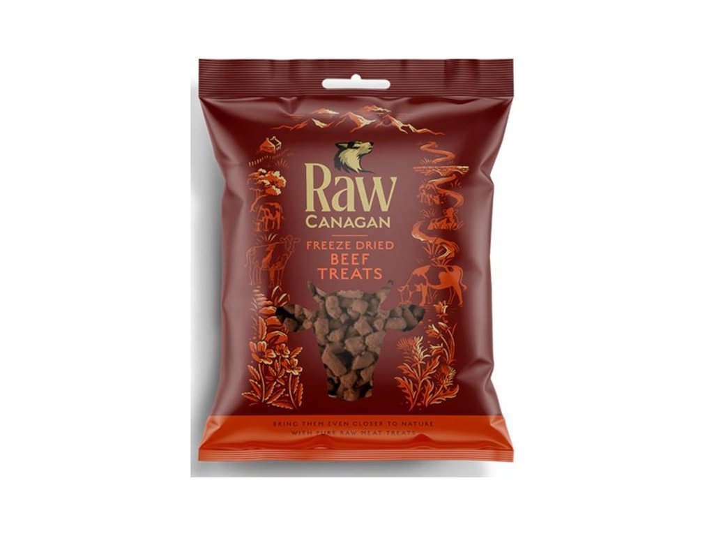 Pamlsky Canagan Raw Freeze Dried Beef obsahují 99 % hovězího. Lyofilizované (mrazem sušené) špalíčky si zachovávají plnou chuť a cenné živiny, takže se skvěle hodí k odměňování dospělých psů i štěňat včetně těch s citlivým trávením.