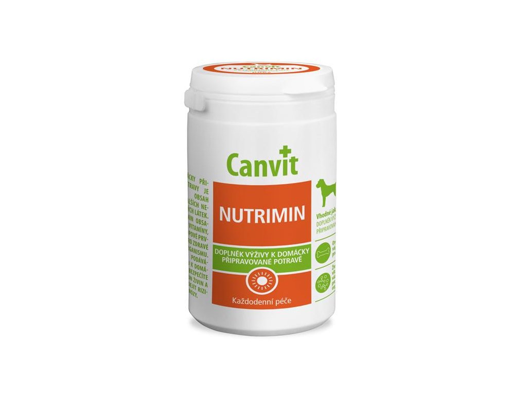 Canvit Nutrimin je doplněk výživy k domácky připravované potravě. Rizikem domácky připravované stravy je nevyrovnaný obsah vitaminů a dalších nepostradatelných látek. Canvit Nutrimin obsahuje veškeré vitaminy, minerály a stopové prvky nezbytné pro zdravé fungování organismu. Pravidelným podáváním přípravku k domácímu jídlu zabezpečíte bezpečný přísun živin a pomůžete předejít riziko hypovitaminózy.