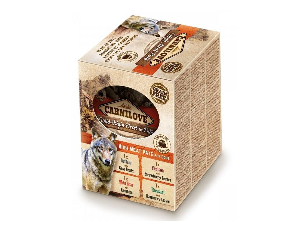 Kompletní krmivo pro psy ve formě Multipacku kapsiček s lahodnými kousky masa divokého původu v paštice - to je Carnilove Dog Pouch Paté. Multipack je vhodný pro vybíravé psy, nebo jako chutný přídavek ke granulím. Obsahuje unikátní druhy masa a je zcela bez obsahu obilovin, brambor, GMO, sóji, konzervantů a barviv. S vysokým obsahem masa - 85 %!