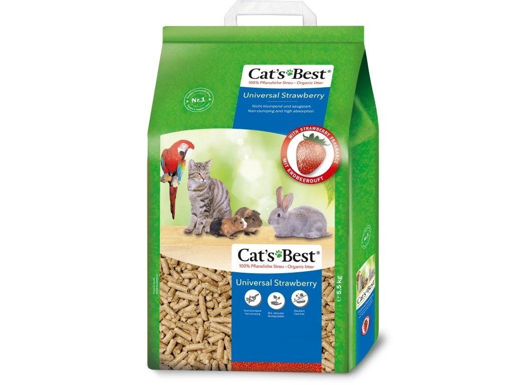 Víceúčelová podestýlka pro kočky s vůní jahod. Lákavá a voňavá.