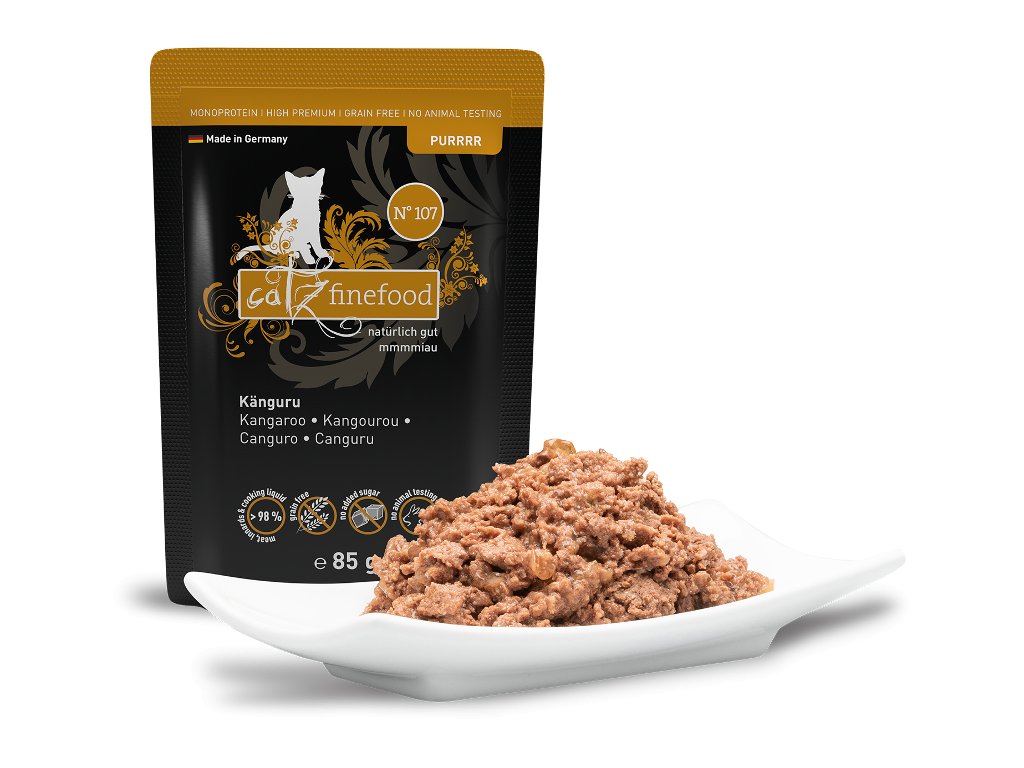 Lahodná kapsička pro kočky, která obsahuje pouze klokaní maso, vývar, minerální látky a olej z brutnáku lékařského. Konzerva je tak vhodná i pro kočky s citlivým zažíváním nebo pro alergické kočky. Jedná se o kompletní krmivo.