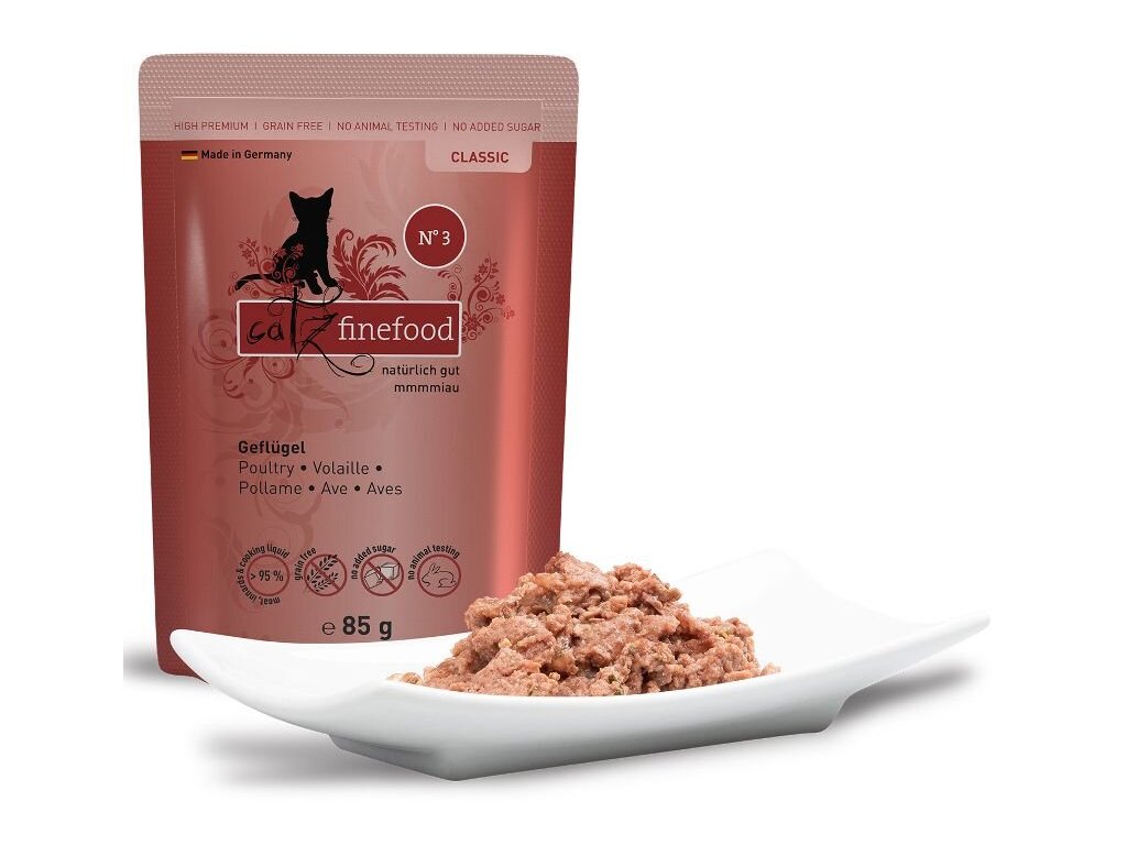 Catz finefood je zdravé a vyvážené krmivo pro kočky. Jednotlivé porce krmiva jsou připravené tak, aby odpovídali přirozené potravě koček – kořisti.