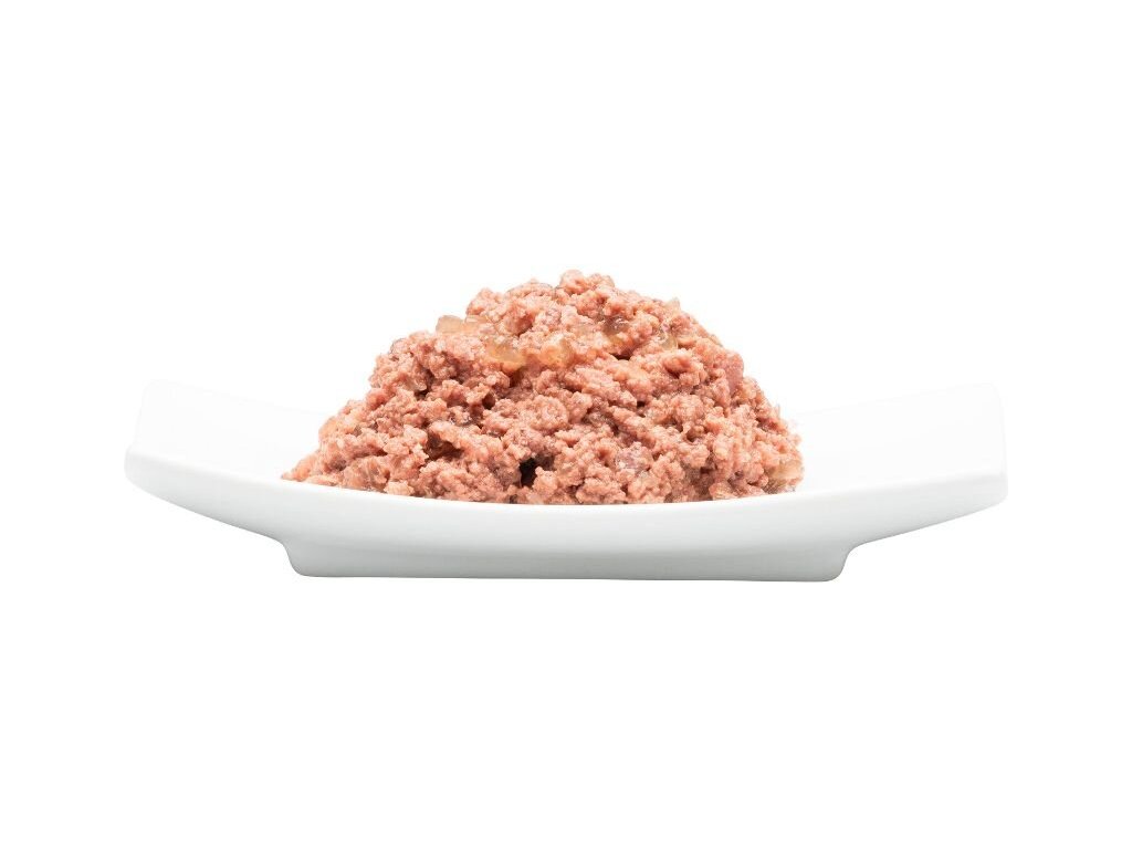 Složení: kuřecí maso 70% (srdce, svalovina, játra, žaludek, krk a tuk), kuřecí vývar 28,8%, minerály 1%, makadamový olej 0,2%