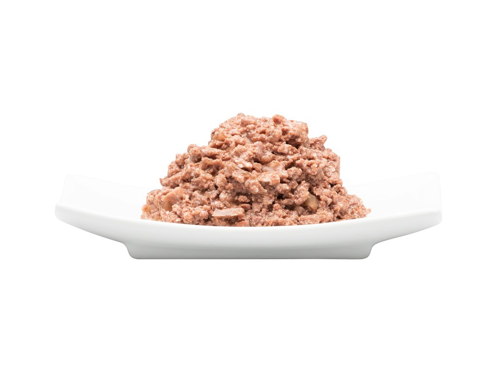Složení: kančí maso 70 %, kančí vývar 28,8 %, minerální látky 1 %, hroznový olej 0,2 %