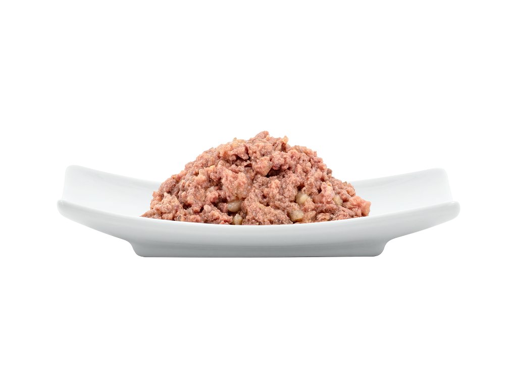 Složení: koňské maso 70% (svalovina, játra, srdce a plíce), koňský vývar 28,8%, minerální látky 1%, dýňový olej 0,2%