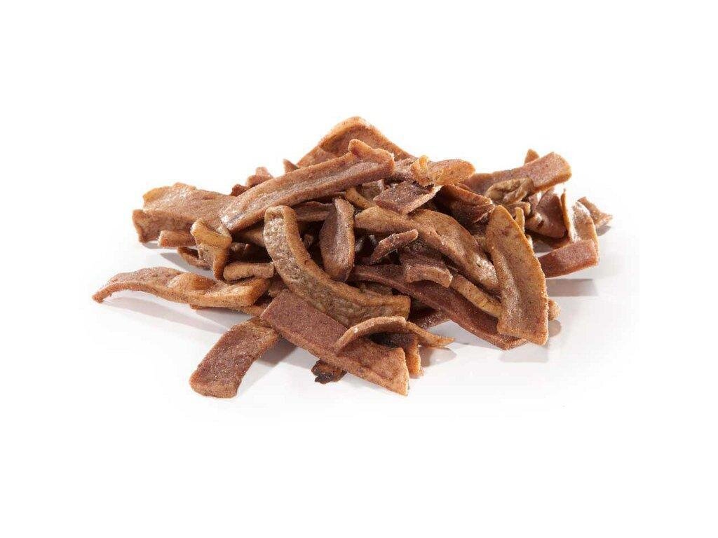 Křupavé proužky grilovaného a usušeného telecího masa se sýrem cottage bez soli a laktózy.