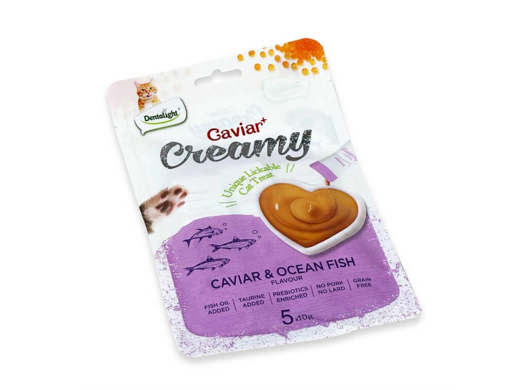 Ryba, kaviár, tapiokový škrob, karagenan, extrakt ze zeleného čaje, pivovarské kvasnice, taurin, lososový olej, multivitamíny, manóza-oligosacharidy.