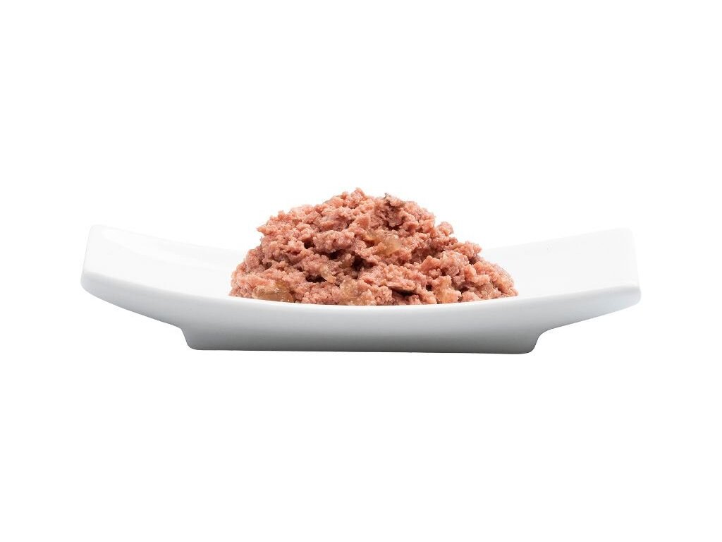Složení: maso z lososa 35%, drůbeží maso 35% (srdce, svalovina, játra, žaludek, krk a tuk), vývar z lososa a drůbeže 26,55%, špenát 1%, rajčata 1%, minerální látky 1%. vaječné skořápky 0,3%, konopný olej 0,15%