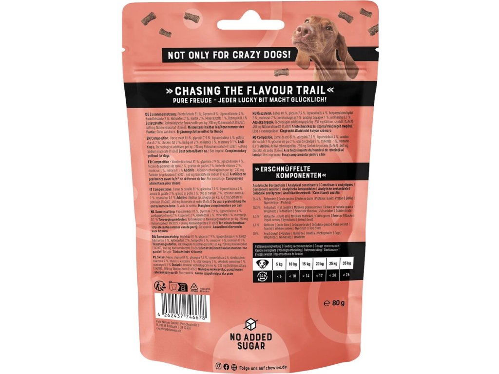 Chewies Lucky Bits jsou pamlsky s extra vysokým obsahem masa, které poslouží jako skvělá odměna a zdravá svačinka nejen při tréninku.