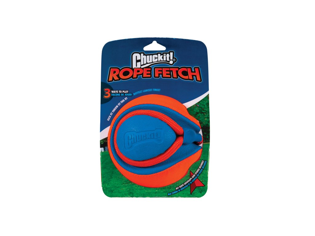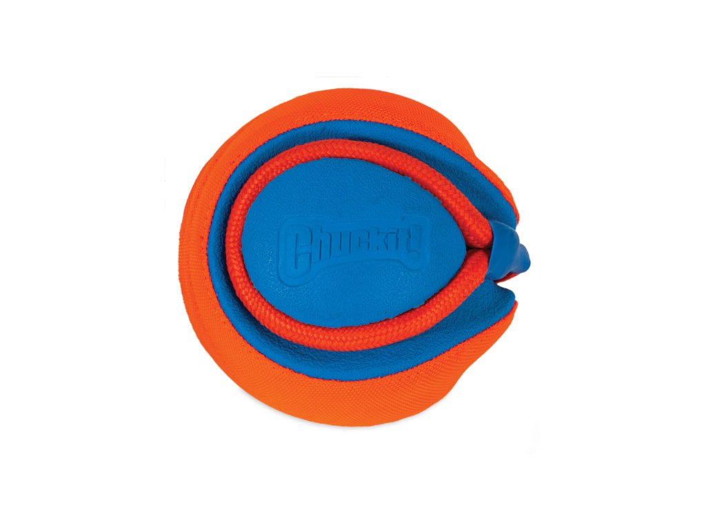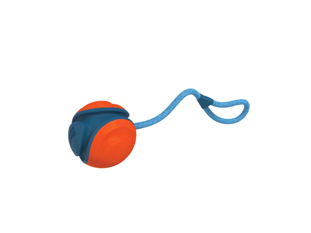 Nylonovou šnůru s poutkem lze snadno schovat do povrchu míče. Ten je pro psa během hry dobře uchopitelný díky příjemně tvarovanému designu.