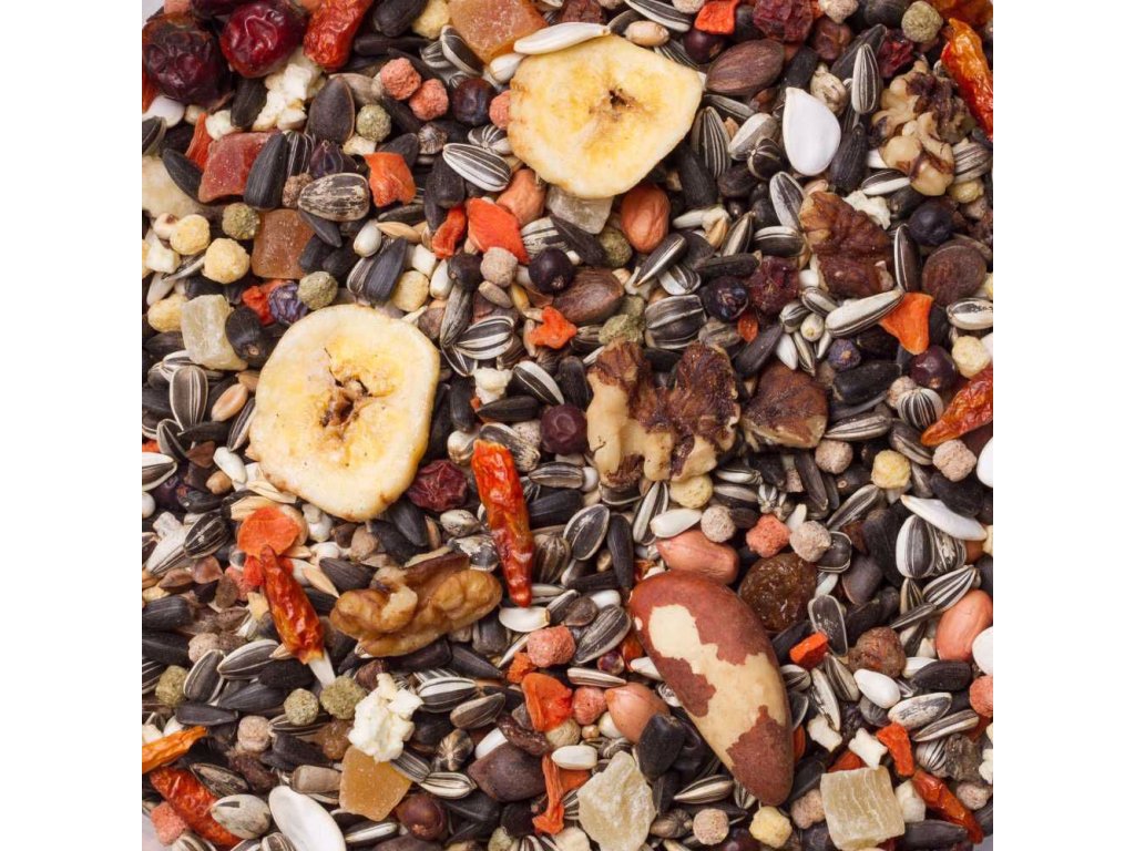 Deli Nature Amazonas Park SERENGETI 2kgSpeciálně pro africké druhy papoušků. Směsi Amazonas Park byly vyvinuty ve spolupráci s Amazonas Park v Řecku a švícarským chovatelským centrem. Roky zkušeností a znalostí špičkových chovatelů jsou nyní v těchto směsích dostupné pro chovatele a majitele mazlíčků. Při vývoji řady se odborníci vrátili zpět do “přirozeného prostředí” papoušků a zohlednili specifické nároky papoušků. Amazonas Park SERENGETI je ideální směsí pro všechny druhy afrických papoušků. Černá slunečnice, para ořechy, vlašské ořechy, pinové ořechy, loupané burské ořechy... skvěle těmto druhům vyhovují, protože vyžadují dietu obsahující více tuku. Směs je obohacena nejen gritem (pro podporu trávení) a extrudovanými peletami obsahujícími důležité vitamíny aminokyseliny a stopové prvky, ale i hrozinkami, papájou, ananasem, kousky jablek a banánů. -4x čistěno! Nejčistější díky unikánímu čistícímu systému. -neobsahuje kukuřici-neobsahuje skořápky ořechů-baleno do freshness pack - speciálního obalu k udržení maximální čerstvosti-se zipovým uzávěremSložení: slunečnice černá, slunečnice žíhaná, světlice barvířská (kardi), pohanka, bílý čirok, extrudované granule, neloupaná rýže, pšenice, piniové oříšky, loupaný oves, grit, plody jalovce, ječmen, rozinky, konopné semeno, sušené šípky, kousky mrkve, loupané burské ořechy, dýňová semínka, ostropestřec mariánský, para ořechy, papája, ananas, plátky banánu, jablko, vlašské ořechy, jeřabiny, chilli papričky.Analytické složky: hrubý protein 13,6%, hrubé tuky 19,1%, hrubá vláknina 16,4%, popeloviny 4,7%, vápník 0,89%, fosfor 0,31%, sodík 0,03%Nutriční doplňkové látky na kg: vitamín A 1400 m.j., vitamín D3 120 m.j., vitamín E (all-rac-alfa-tocopherylacetaat) 12mg, měď (síran měďnatý) 0,4mg, železo (monohydrát síranu železnatého) 2,84mg, zinek (monohydrát síranu zinečnatého) 4,4g mangan (monohydrát síranu manganu) 0,2mg, selén (seleničitan sodný) 0,005mg, jód (jodid vápenatý) 0,08mg, obsahuje přísady schválené EK.Skladujte v suchu a chladu. Koupí produktů Deli Nature přispíváte na ochranu ohrožených druhů papoušků, jiných druhů ptáků a jejich přirozeného prostředí.ILUSTRATIVNÍ FOTO