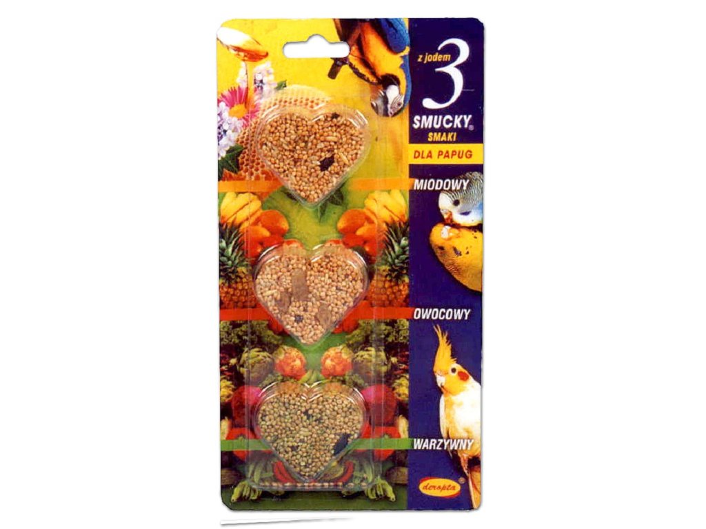 Tvarované krmivo pro andulky a střední papoušky (medové + ovocné + zeleninové).